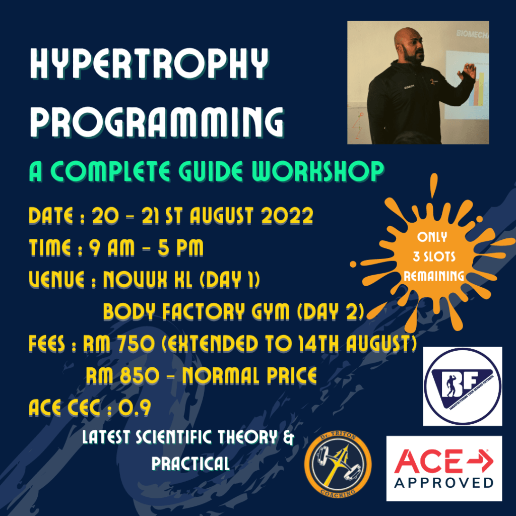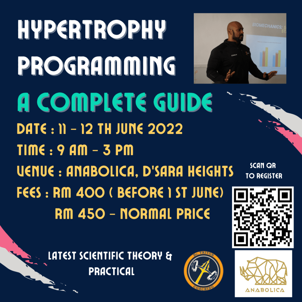 This is a 2-day workshop on various aspects including Physiology, Anatomy, Major Determinants of Hypertrophy and How to effectively program for Hypertrophy, followed by a second day of practical where we apply what was learned on Day 1